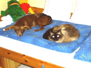 super eingelebt und schon Ihren Platz auf dem Sofa und Bett