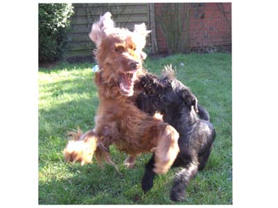 beiden spielen den ganzen Tag zusammen! Meine Setterhündin