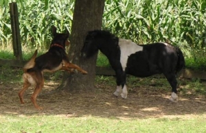 Er ist an Katzen, Hühner, Pferde und Schweine gewöhnt.