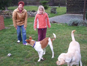 Hund, der freundlich zu allen ist.