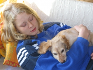 Mit unserem großen Hovawart und unserer Katze versteht sie sich