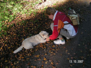 sie auch. Sie ist sehr menschenbezogen, kennt die Leine und ist