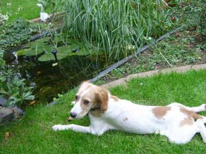wie Sie sich denken können, habe ich im Moment drei Hände zu wenig und jeder Tag ist 5 Stunden zu kurz, deshalb kann ich Ihnen jetzt gar nicht ausführlich berichten. Aber ein paar aktuelle Bilder von Iker möchte ich Ihnen doch rasch senden, entstanden beim genüßlichen Zerlegen eines Teddybärs und beim Ballspiel in Nachbars Garten. Wir hatten eine super gute zweite Nacht (9 Stunden Schlaf ohne Unterbrechung) und heute einen wunderschönen Tag zusammen. Iker ist ausgesprochen lernfreudig heute sind wir gemeinsam über große Felsbrocken gesprungen, die in ca. 1 Meter Abstand voneinander als Wegmarkierung dort lagen er hat kein bisschen geschummelt! Und ein Stöckchen bringt er mir schon und holt es auf Aufforderung auch. Und vor dem Überqueren einer Staße bleibt er auf Steh stehen und und und.... er ist ein super toller, agiler und verschmuster süßer Hund!!! Morgen früh kommt der Trainer vom Animal Point um ihn sich anzusehen bin sehr gespannt und hoffe, dass wir eine gute Gruppe mit netten Hundekumpels in der Hundeschule finden. Die Hunde, denen wir bisher begegnet sind scheinen in ihrem Sozialverhalten gestört zu sein; gestern ist dem armen, freundlichen Iker-Kind einer sogar an den Hals gegangen. Iker hat ein paar Stunden lang unter diesem Eindruck sichtlich gelitten, aber ich konnte sein Befangen schließlich mit guter Laune wegspielen.