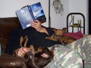 Sie hat auch den "Pinschertypischen Größenwahn" entwickelt, auf Spaziergängen schützt sie "ihr" Rudel durch mutiges bellen und knurren vor anderen Hunden. Richtig ernst ist das aber nicht, sie kann ja mit anderen Hunden.
